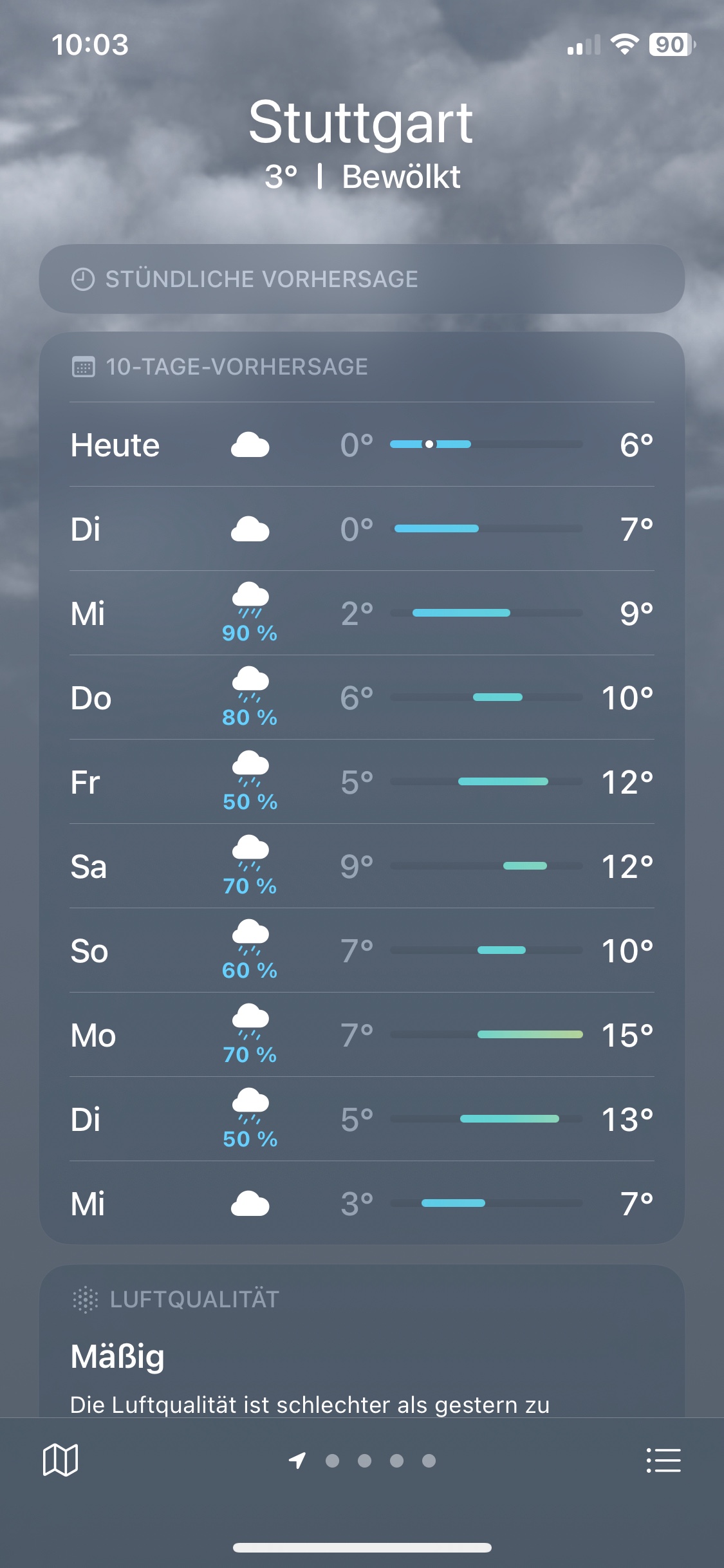 Ich vermisse die 10-Tage-Wettervorhersage im IOS 16.3.1.