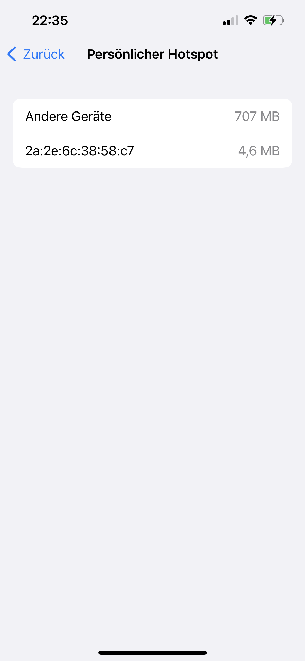 Aufgelistete Geräte bei Hotspot
