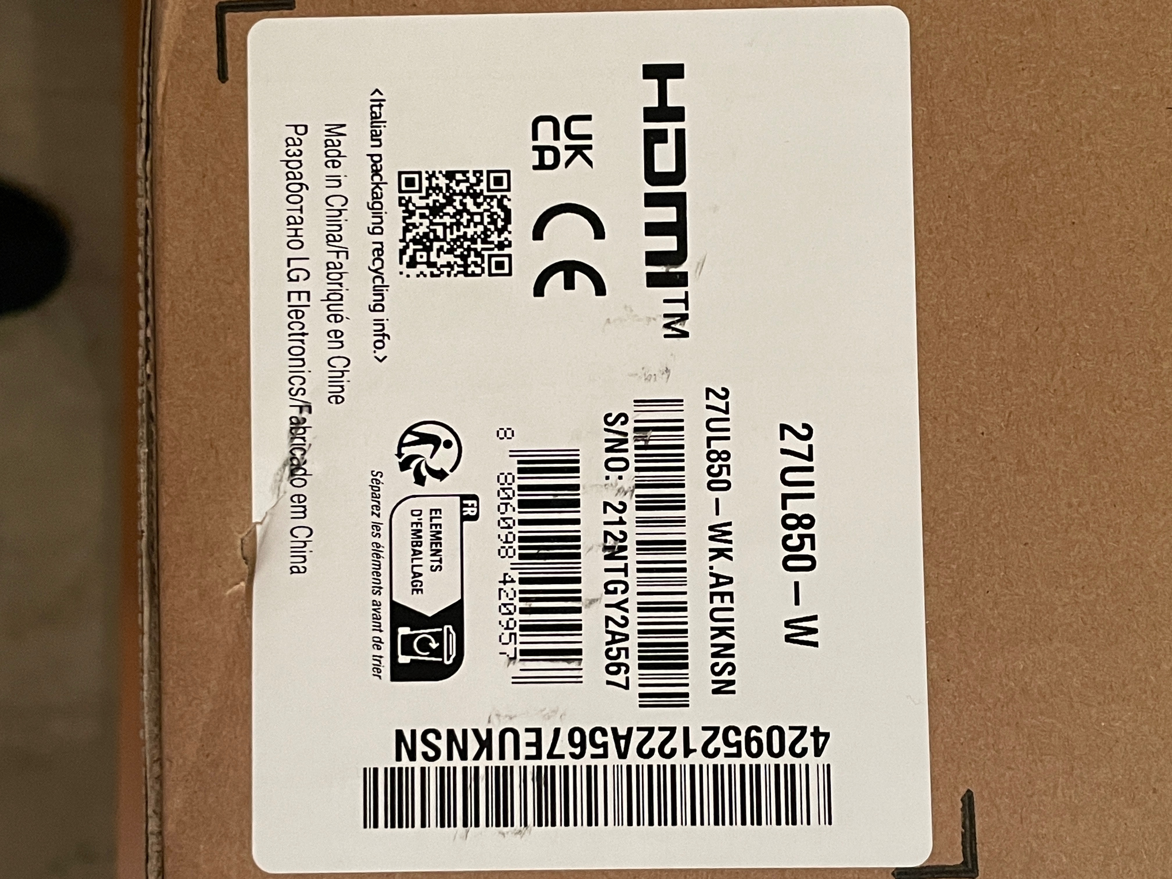 Jetzt möchte ich den Clamshell Modus nutzen. Also Monitor einschalten, Mac aufmachen und einschalten. Bild auf dem Monitor ist vorhanden. Jetzt mache ich den Mac zu, Monitor geht aus, weil kein Bildsignal mehr kommt.