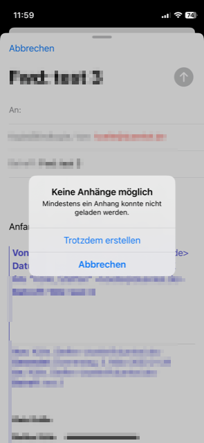Weiterleiten von Mails mit Anhängen in iPhone Mail ist nicht möglich