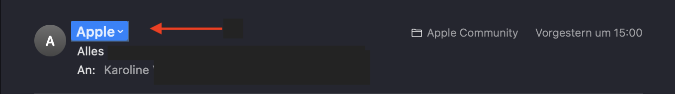 Wenn du eine Email erhältst, die von Apple kommen soll, klicke oder tippe auf den Pfeil, der rechts neben dem Namen nach unten zeigt.