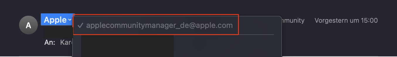 So kannst du den Absender komplett sehen (hier @apple.com).