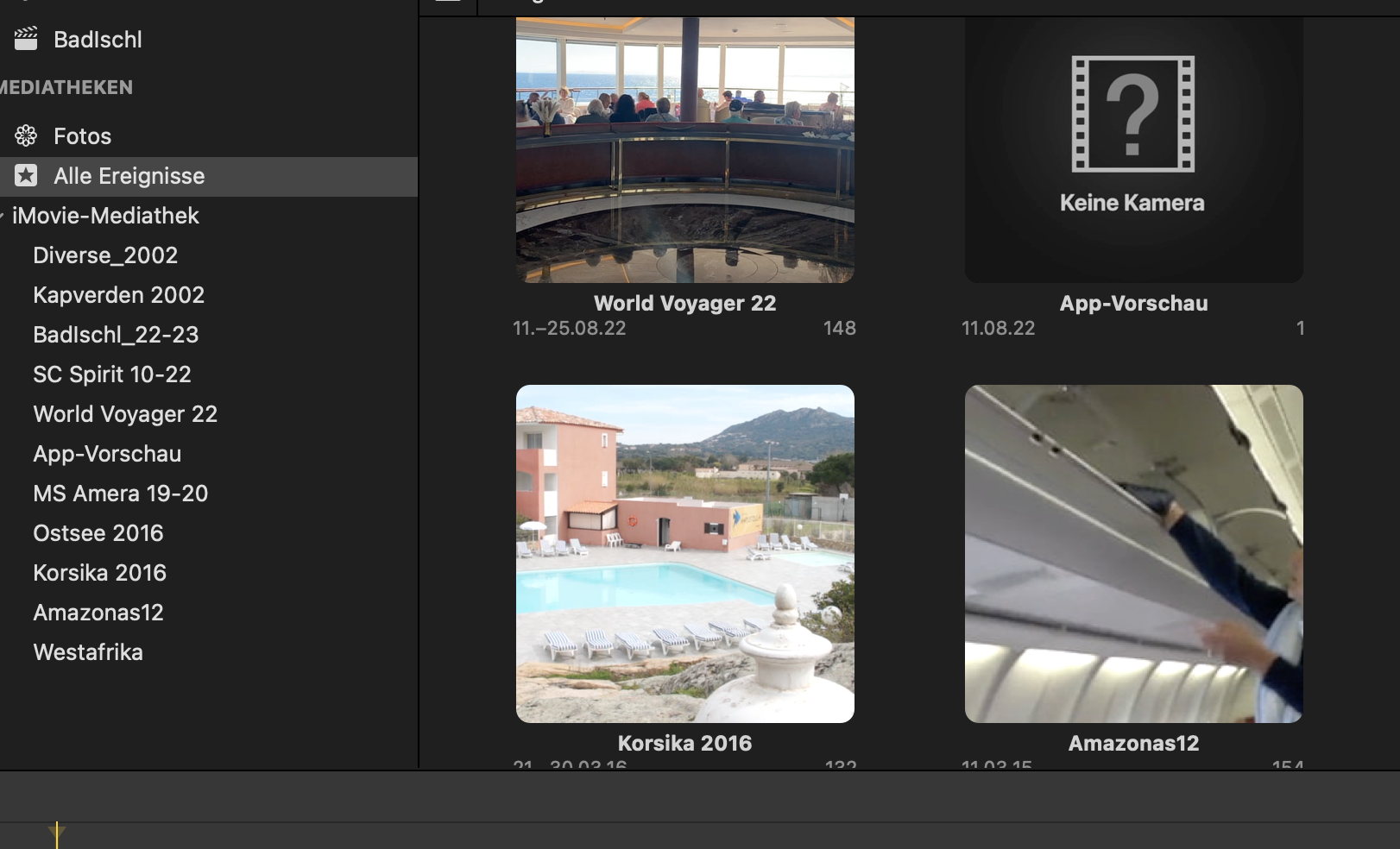 In den Ereignissen befindet sich ein Videofilm mit 148 Clips, den ich mit dem Curser „überfliegen“, alles da. In den einzelnen Clips erscheint aber „keine Kamera“, nur 5 sind komplett. Wie komme kann aus den im Ereignis liegenden Aufnahmen Clips erstellen?