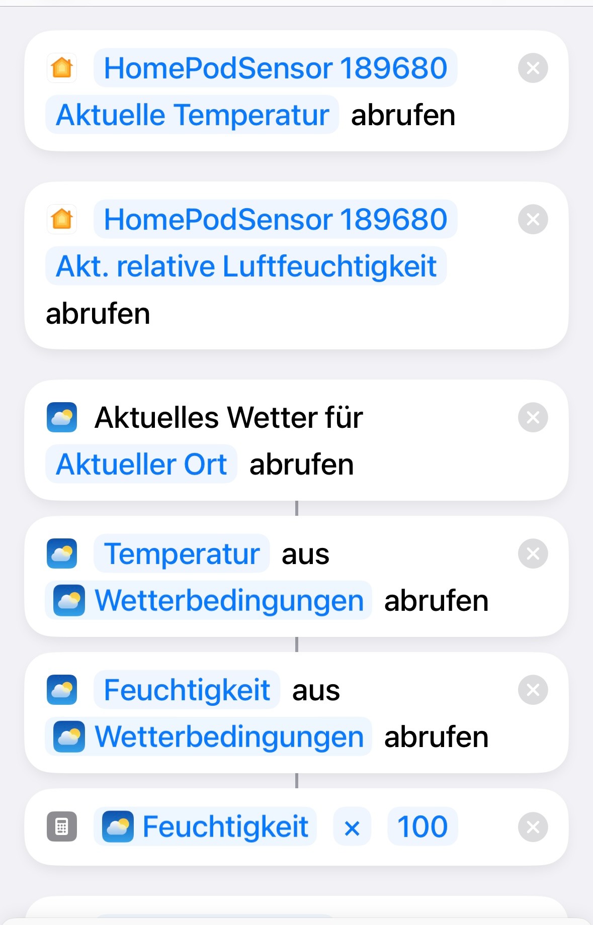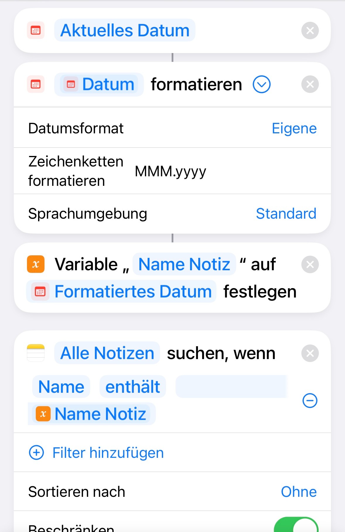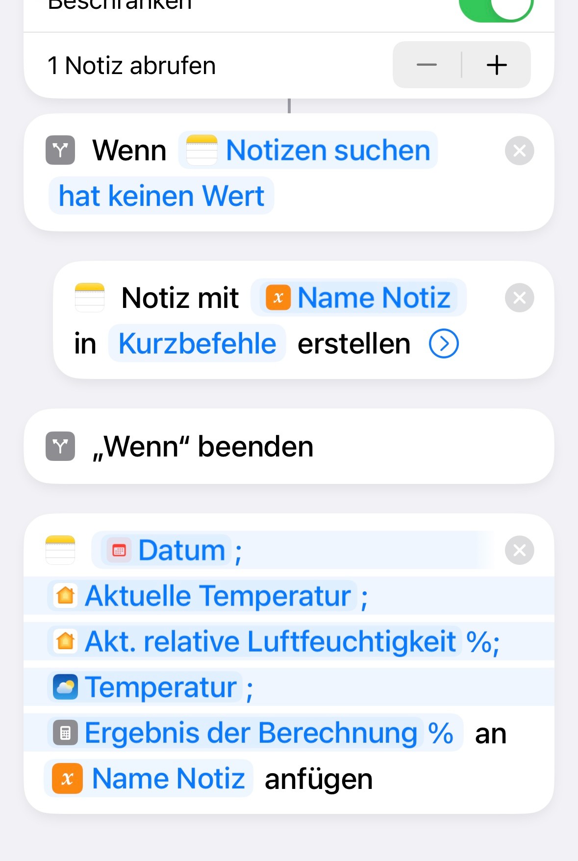 Ich habe über die App Kurzbefehle Automationen erstellt, die zu bestimmten Uhrzeiten Wetterdaten abrufen und in Notizen speichern sollen.