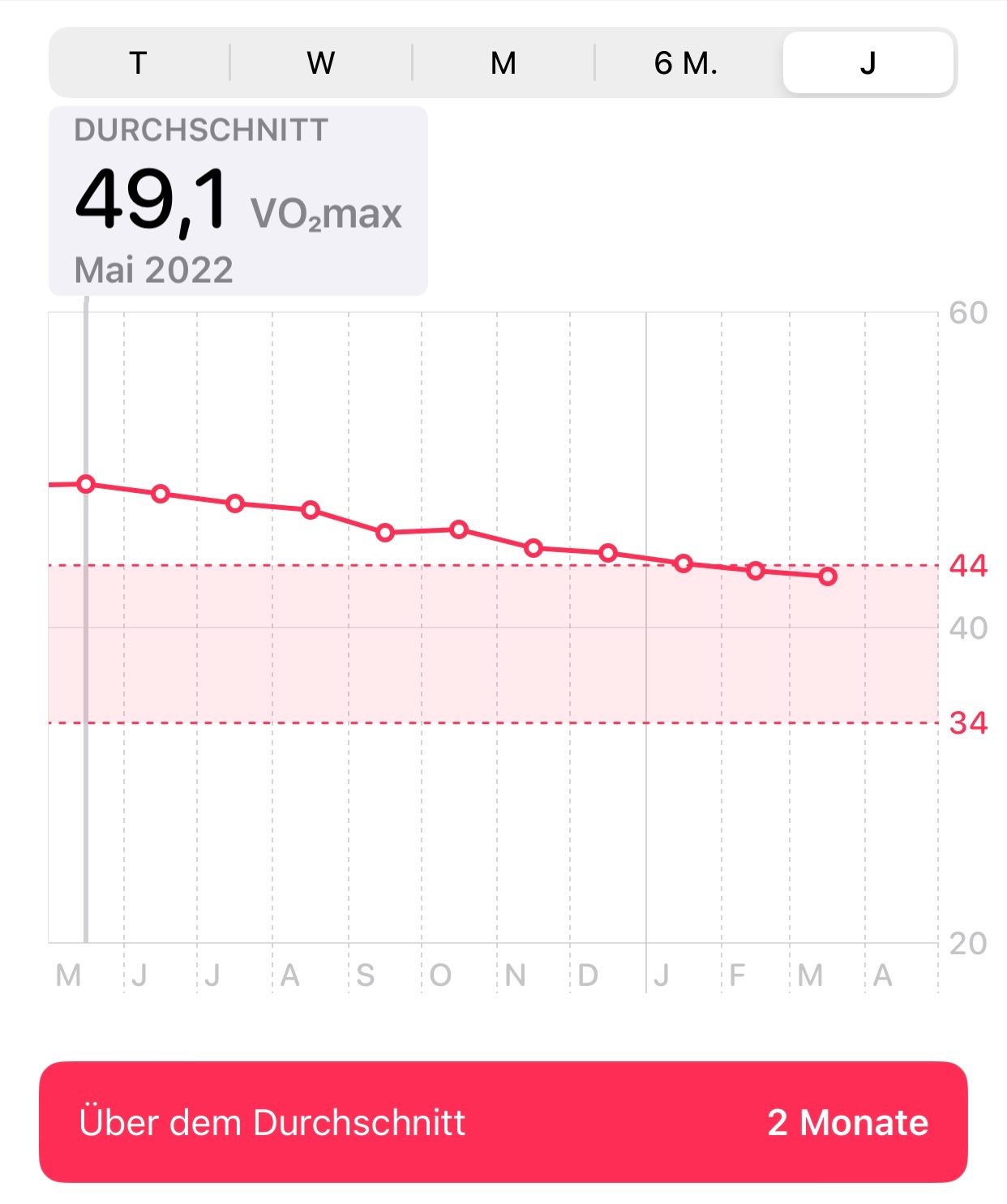 Sinkt Cardiofitness vor neuer Altersstufe in der Health App?