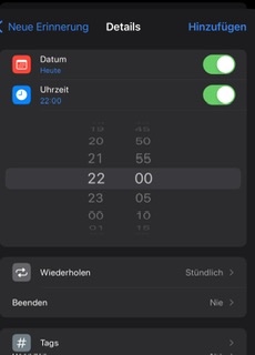 Ist es irgendwie möglich eine Erinnerung in IOS 16.3 kürzer als stündlich einzustellen ?