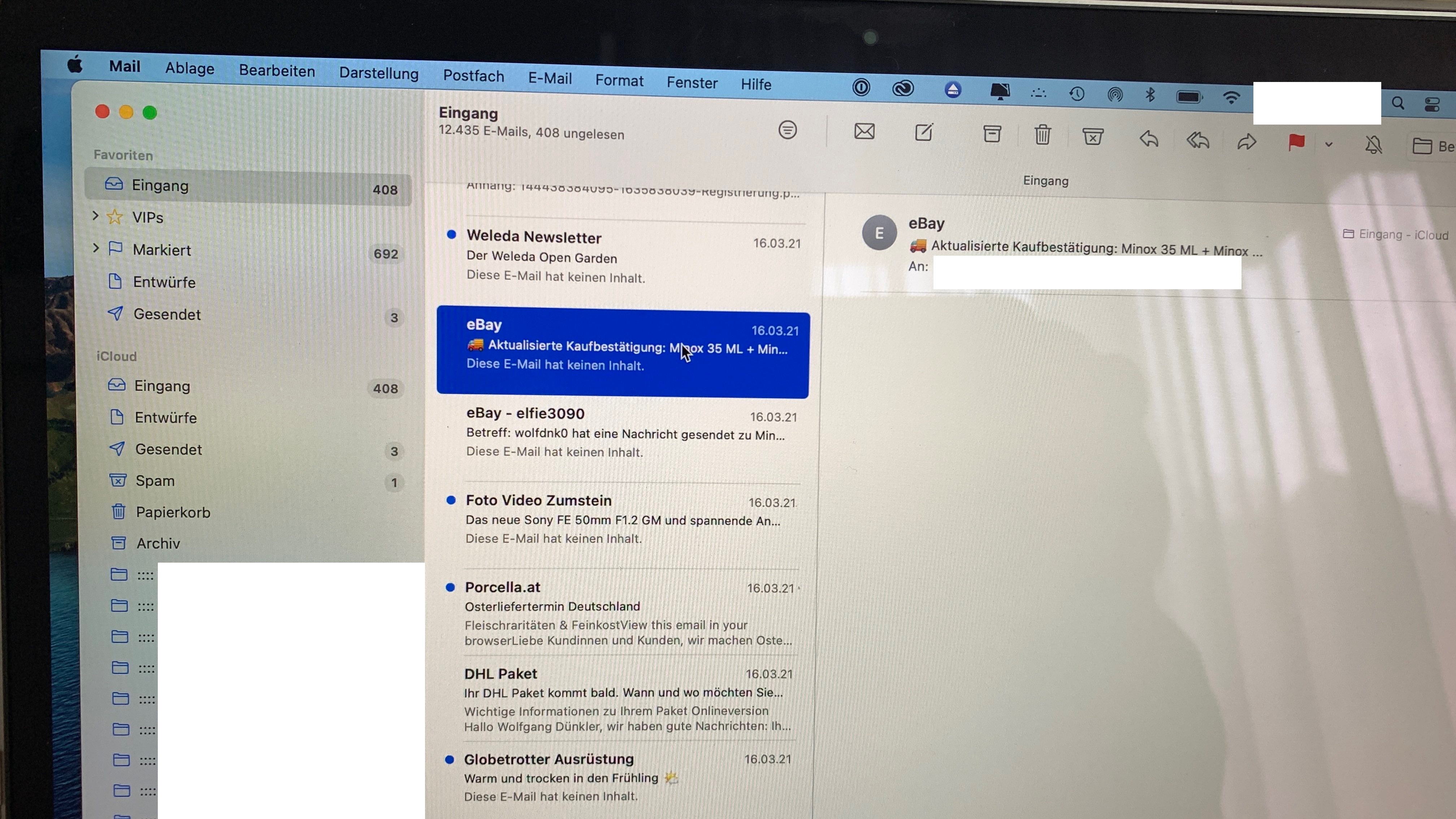 Auf dem iMac ist diese Mail leer - iPhone zeigt jedoch (wichtigen) Inhalt an.