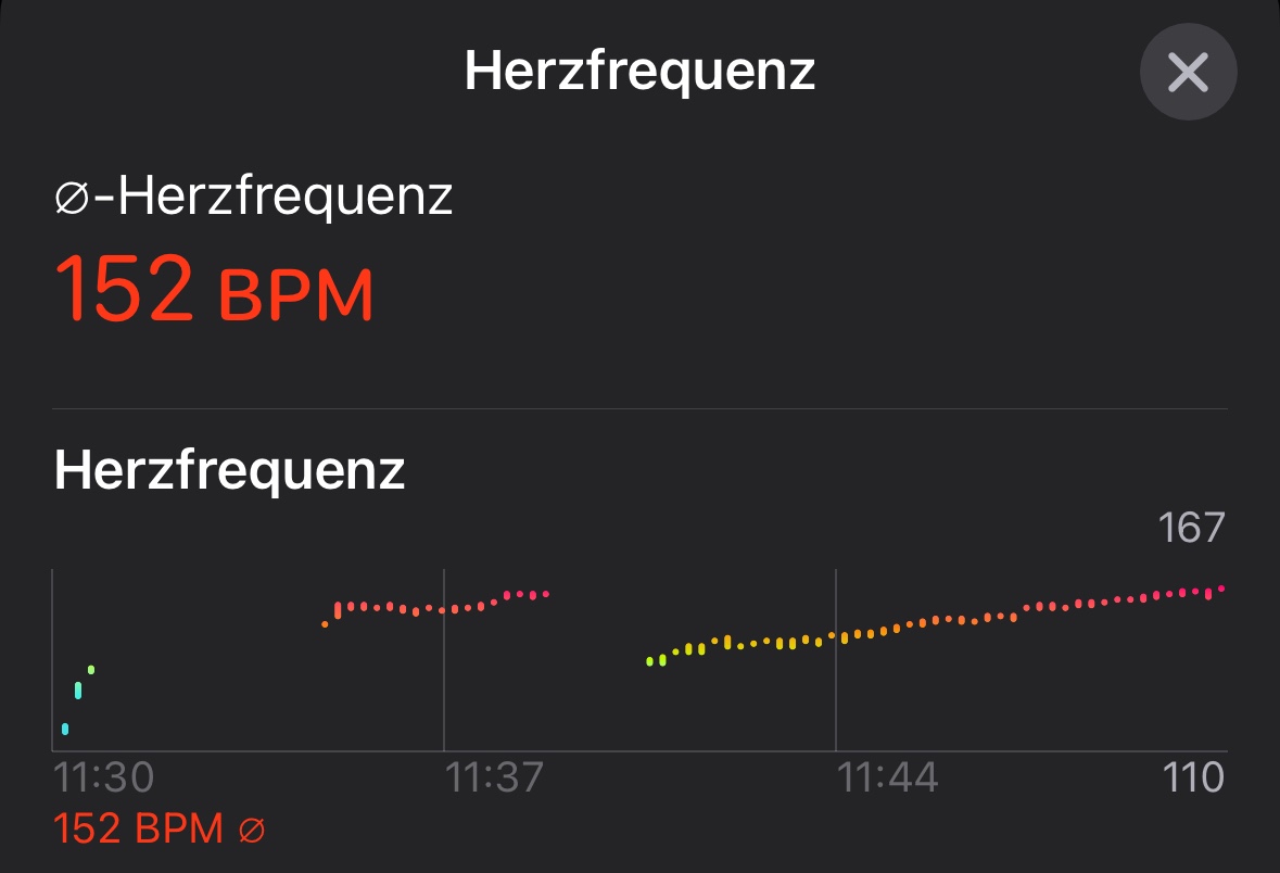 Insgesamt verbessern konnte ich übrigens das Erkennen meiner Herzfrequenz durch das wegrasieren meiner Behaarung an der Stelle an der die Watch immer aufliegt.