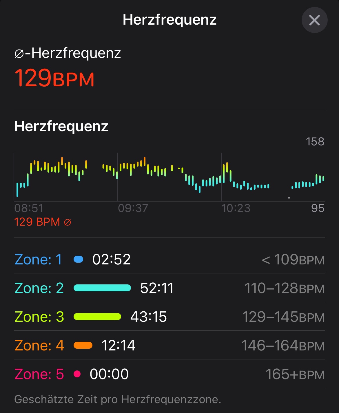 Die Herzfrequenzmessung bei Trennung zwischen iPhone und Apple Watch wird überwiegend gar nicht mehr angezeigt. Bei Kilometer 3 und Kilometer 7 hat die Apple Watch für mehrere Sekunden die Herzfrequenz erfasst. Das ist in meinen Augen bedenklich und irreführend.