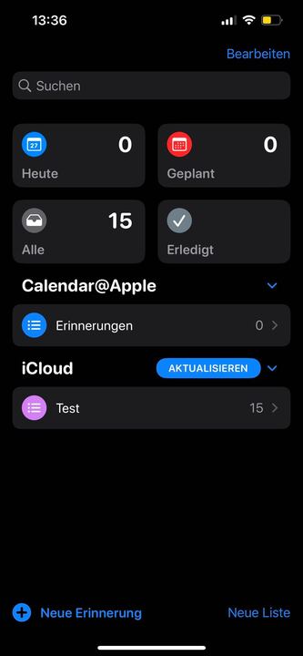 Neben iCloud steht "Aktualisieren". Nachdem ich dies gedrückt habe, wurden mir die Unteraufgaben-Optionen angezeigt, wie in dem Apple Support Artikel, über den du zu uns gekommen bist, beschrieben. Erinnerungen-App auf dem iPhone, iPad oder iPod touch verwenden - Apple Support (DE)