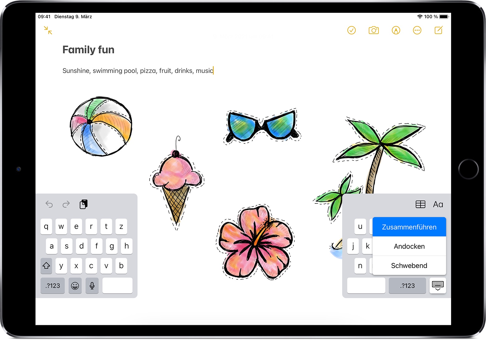 Wenn die iPad-Tastatur klein oder in zwei Hälften geteilt ist
