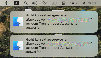 Time Machine Festplatte wird ständig "nicht korrekt ausgeworfen"