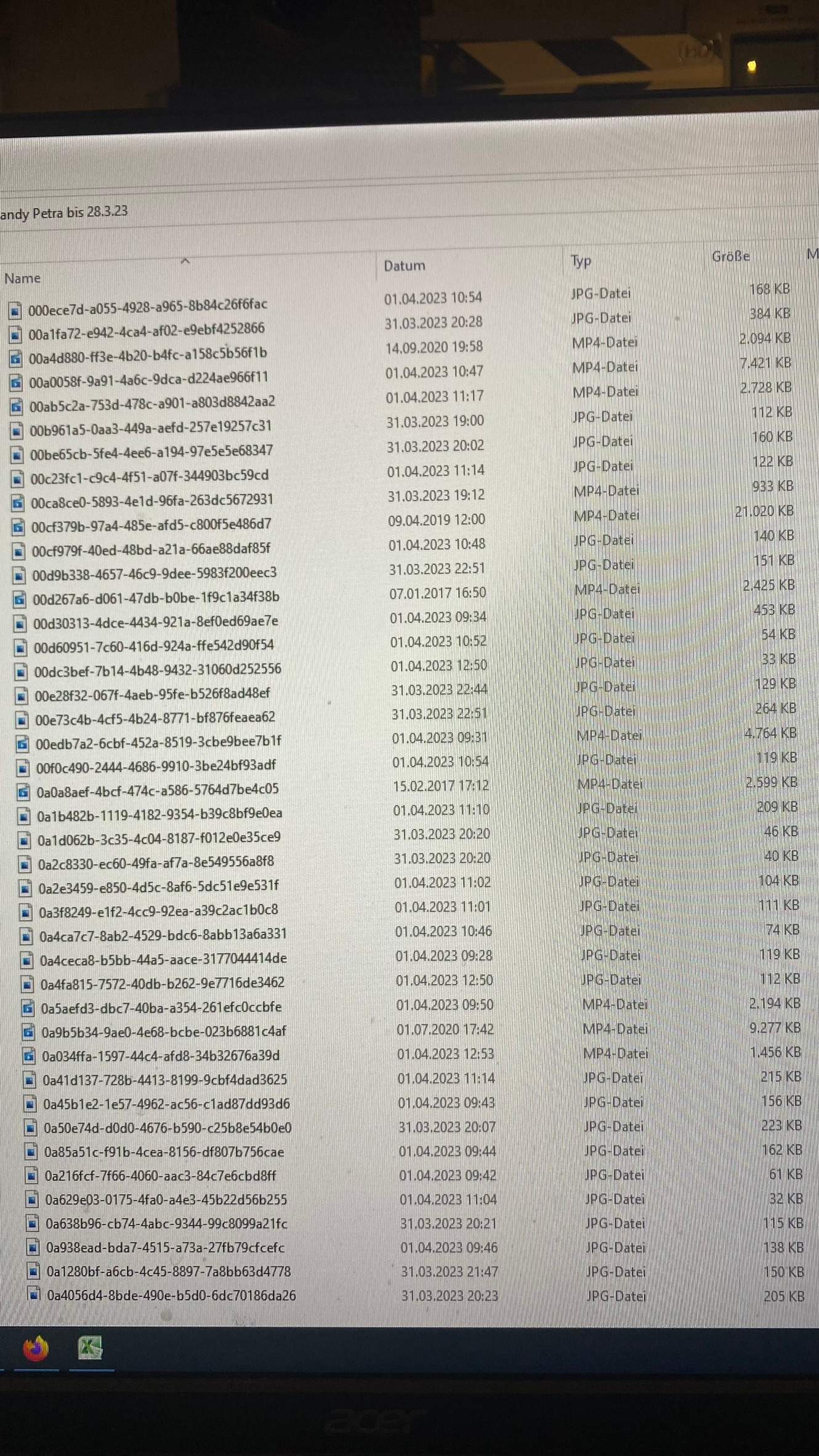 Dann wurden die Bilder wild durcheinander mit dem Kauderwelsch von Zahlen und Buchstaben abgelegt. Ich möchte wenigstens das Aufnahmedatum der Fotos haben, dann könnte ich sie nach Aufnahmedatum sortieren. Aber auch das Anklicken der oberen Zeile, wo ich zusätzliche Spalten auswählen kann Aufnahmedatum, Größe, Typ usw.) wird das falsche Datum eingetragen. Dass kann doch nicht sein, dass ich das Aufnahmedatum nicht sehen kann - statt dessen ein Kauderwelsch von Zahlen und Buchstaben. Auch dort dazischen nichts, was man als Datum herauslesen kann.
