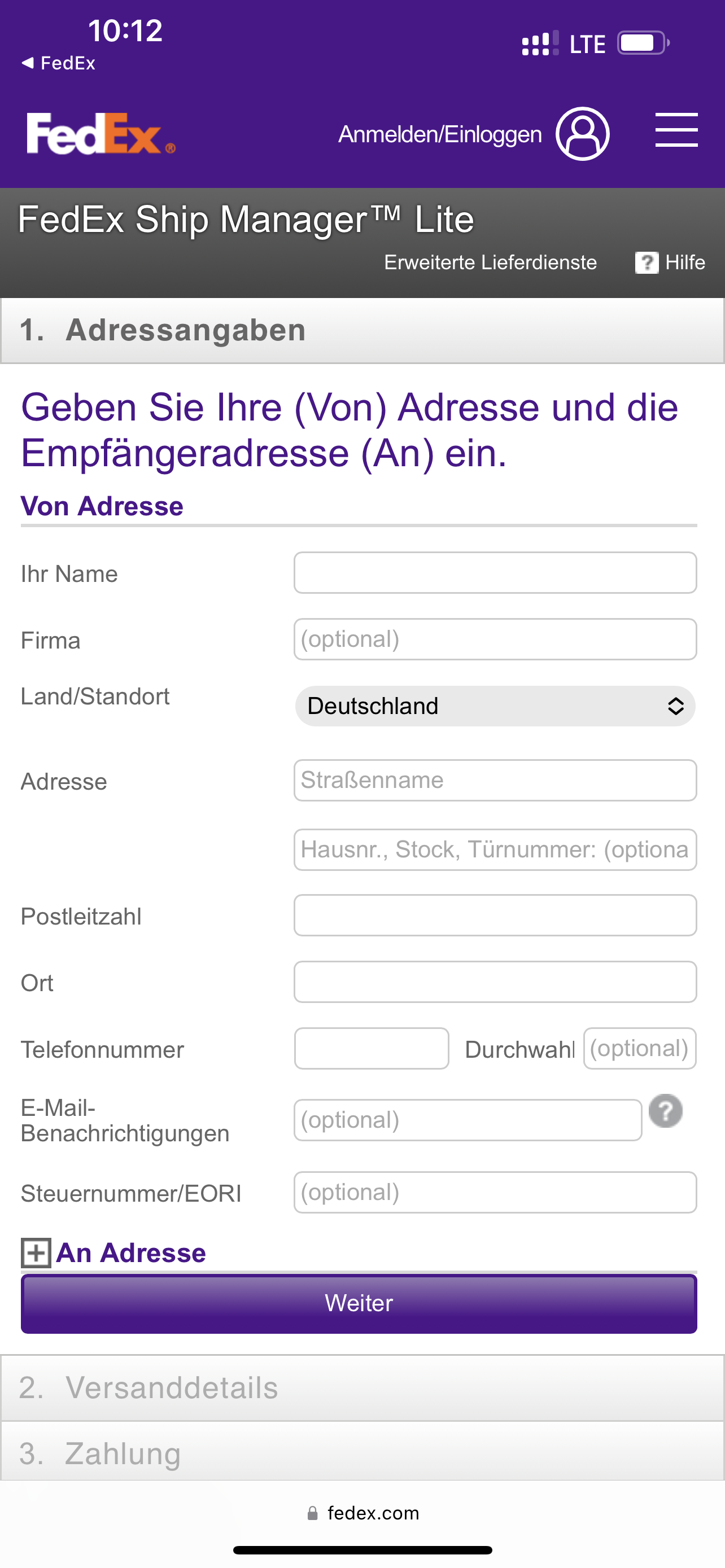Zur Angabe der Telefonnummer. Dein Paket wird wahrscheinlich, nach meiner Erfahrung bisher, mit FedEx versendet. Wenn du bei FedEx ein Paket versenden willst, musst du eine Telefonnummer angeben: