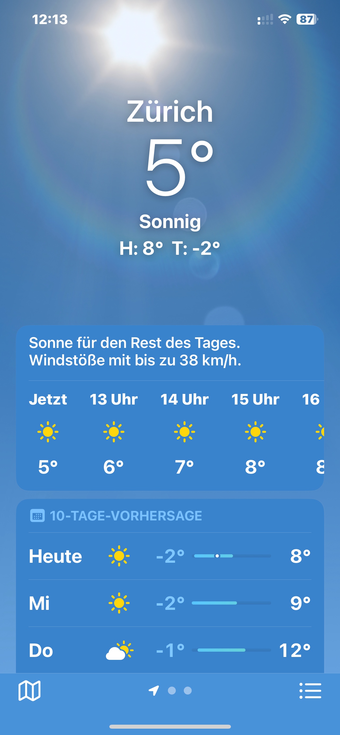 Das einzige was sich bei Wetter geändert hatte war das das Wetter von stark bewölkt auf bewölkt umgeschaltet hat und dann wurde der Himmel bläulich.