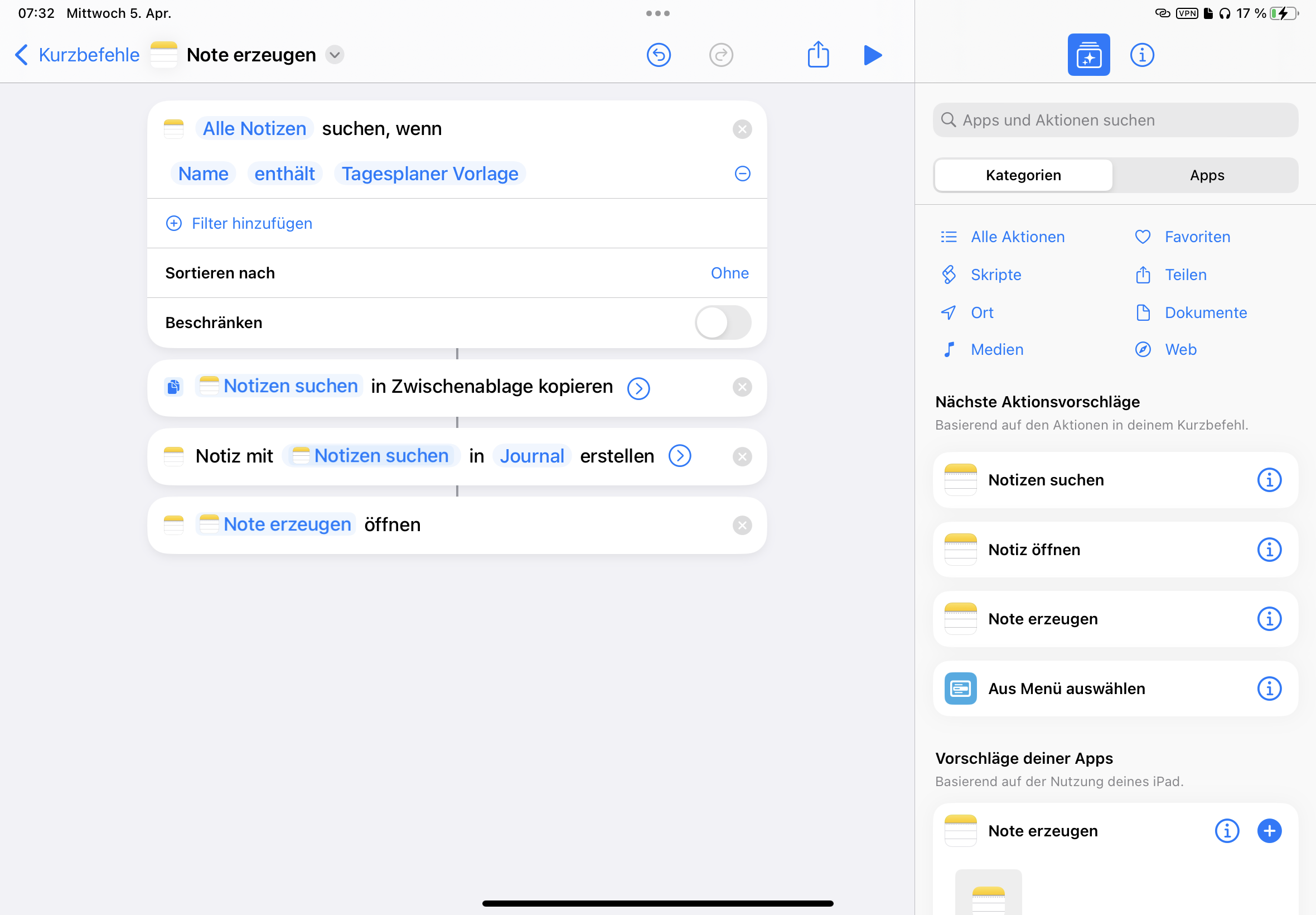 ich habe mir einen Kurzbefehl erstellt, welcher eine vorhandene Notiz kopiert.