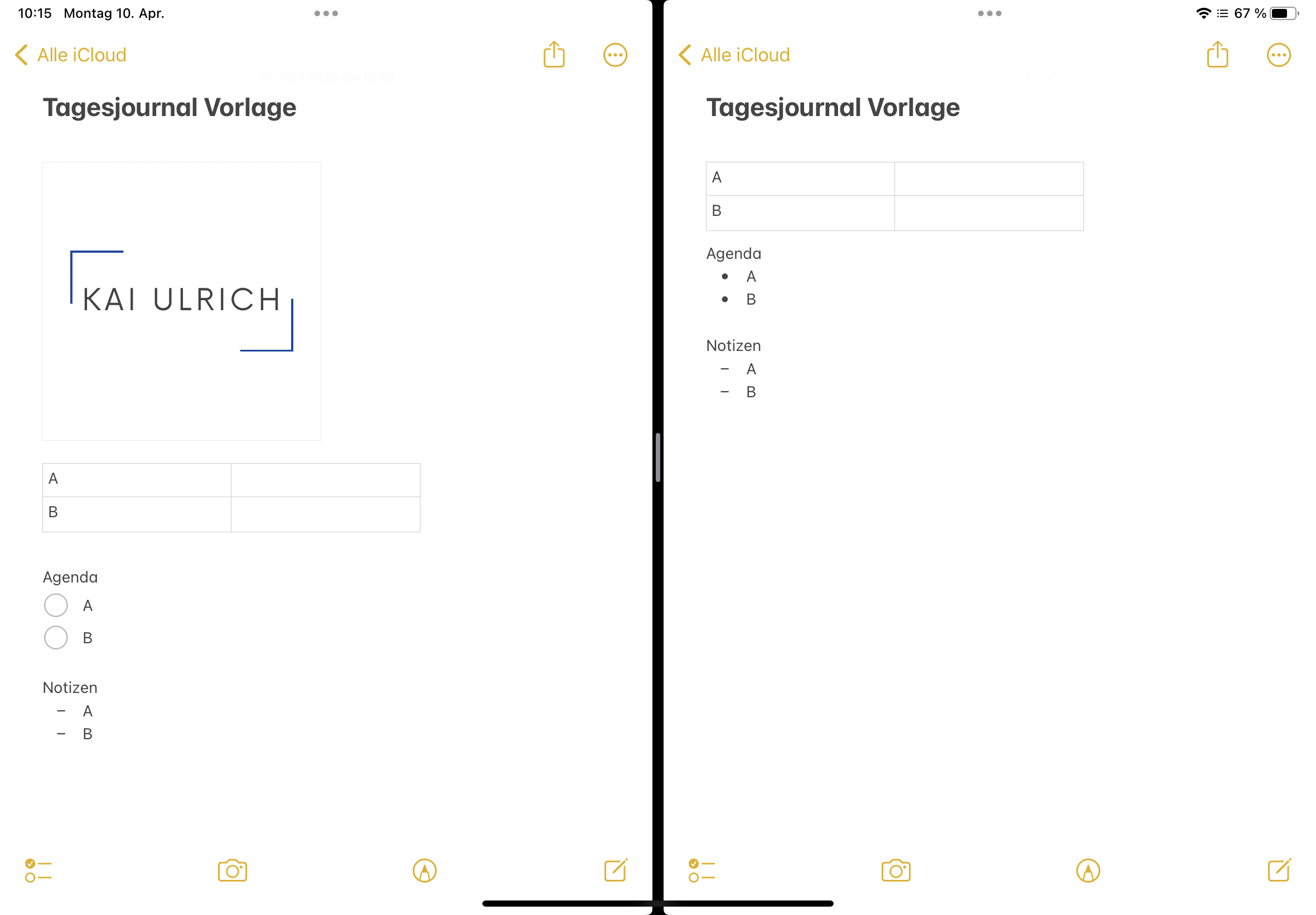 • Du möchtest die Notiz also Ansicht einfach duplizieren, verstehe ich das richtig?
