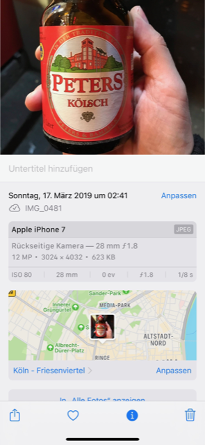 Auf meinem Ipad und meinem Iphone werden sie nun auch angezeigt, aber wenn ich nach den Fotos suche - indem ich z.B. eingebe, was darauf zu sehen ist oder den Ort wo sie geschossen wurden - werden sie mir nicht angezeigt. Dabei ist die ist Ortsaufnahme im Foto aber hinterlegt (s. Foto anbei) und die Stichworte sollte er auch erkennen (hat er früher auch, als ich die Fotos schon mal in der Icloud hatte).