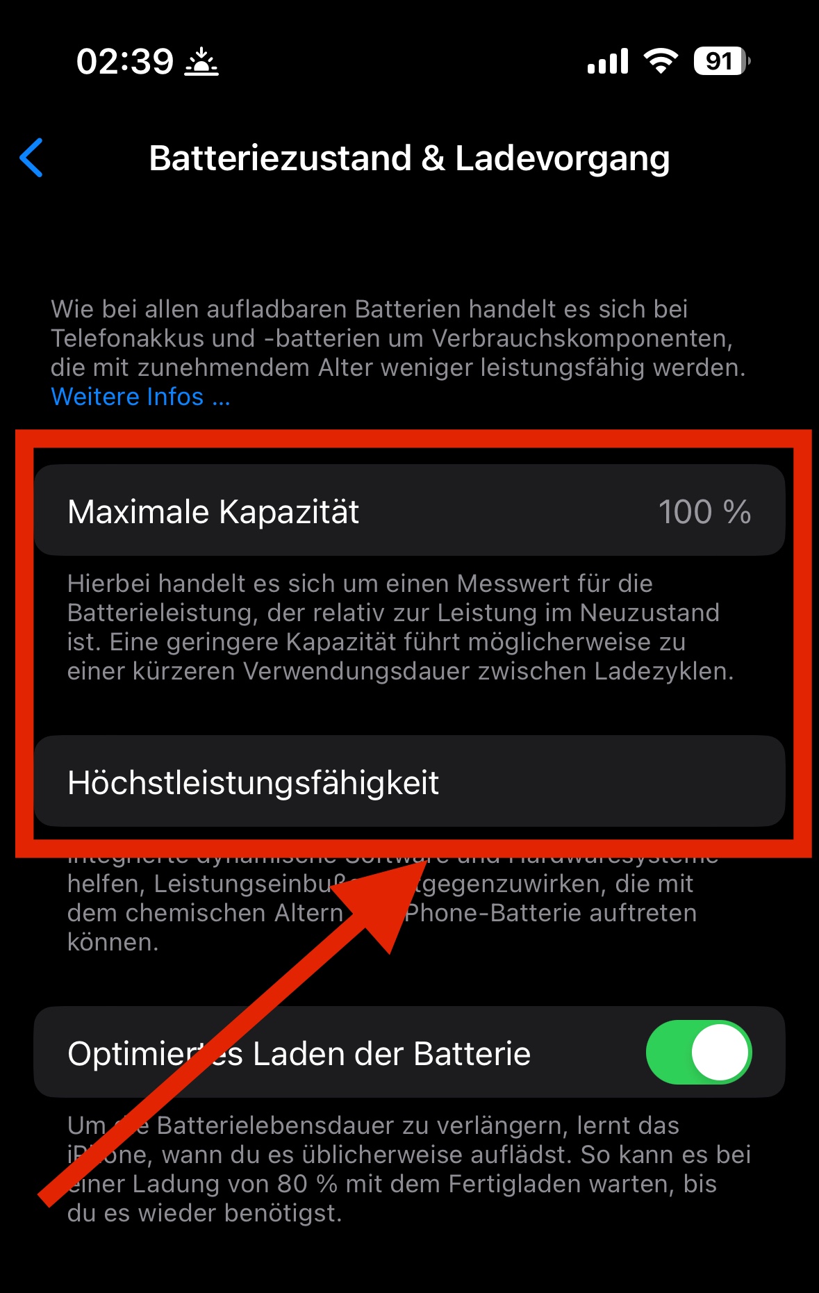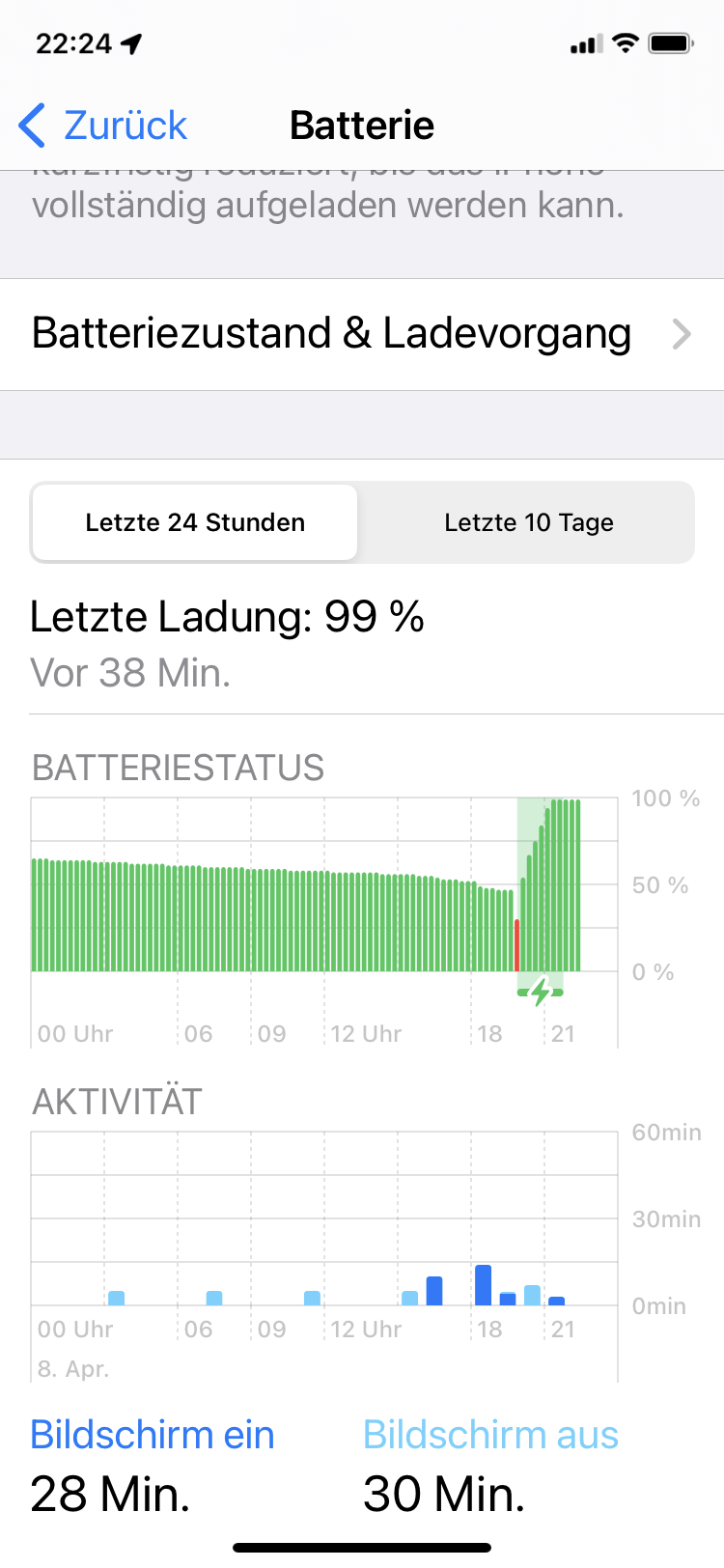 • Einstellungen - Batterie - Batteriezustand & Ladevorgang