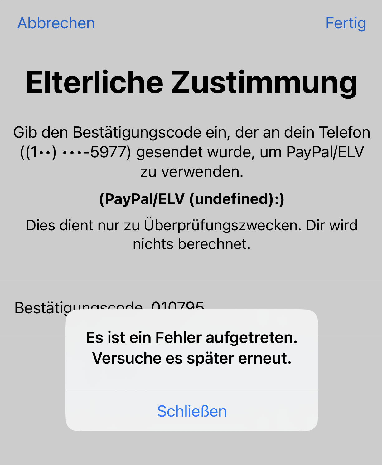 Apple-ID für Kind kann nicht erstellt werden - elterliche Zustimmung fehlerhaft