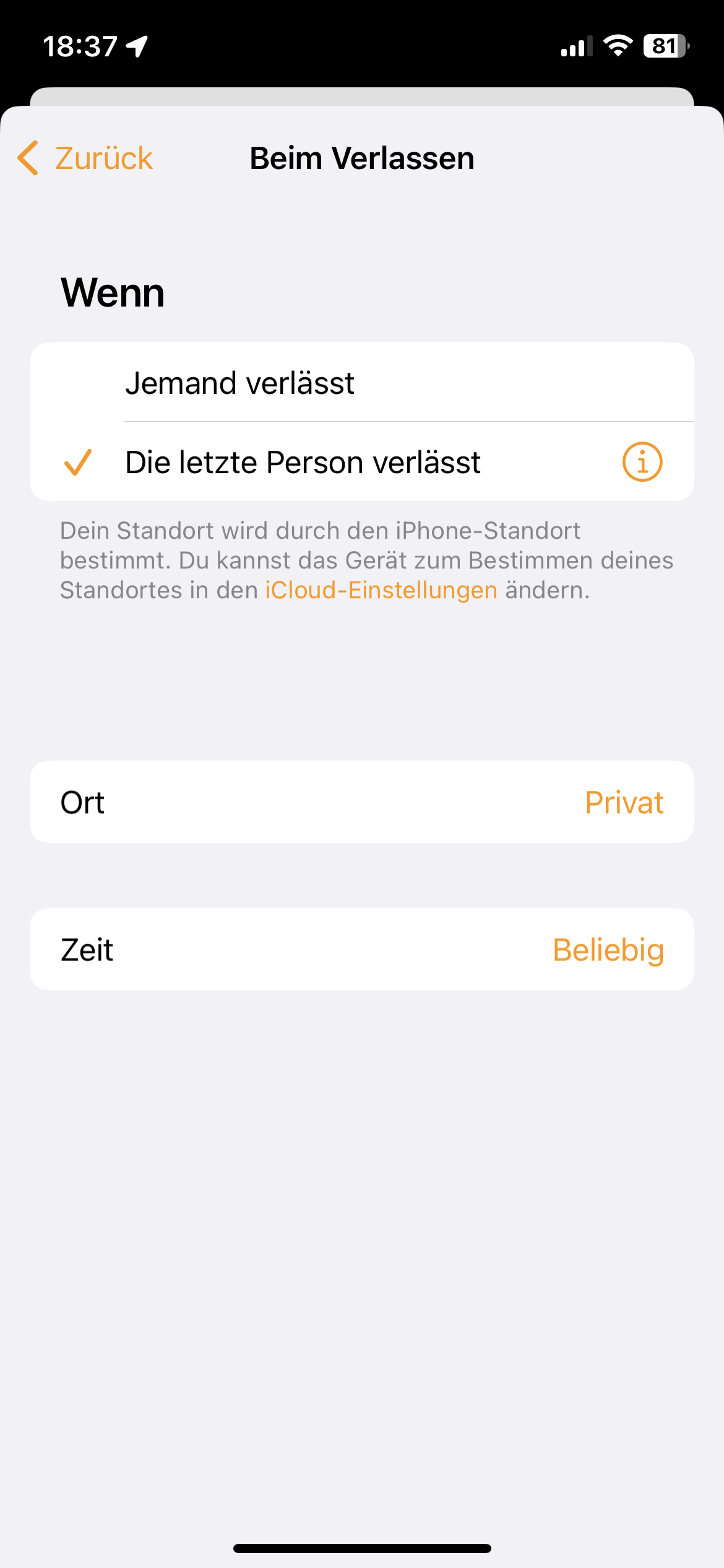ich habe mehrere Automationen die auf meine private Adresse reagieren. Seit einigen Tagen verschiebt sich meine private Adresse immer wieder. Dieses kann ich unter den Automationen sehen wenn ich "Wenn" im Bereit Ort nachschaue. Der Standort von Privat ist ungefähr 500 Meter verschoben.