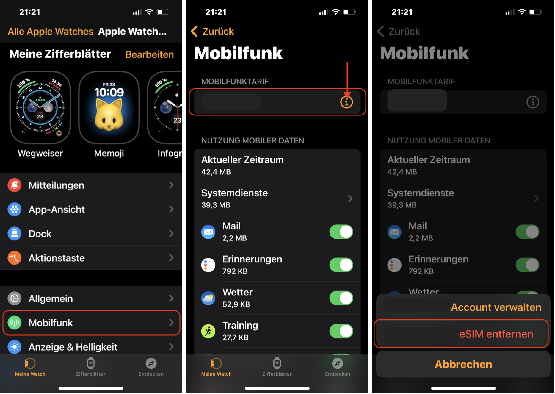 Bei der Apple Watch Ultra den Mobilfunktarif löschen