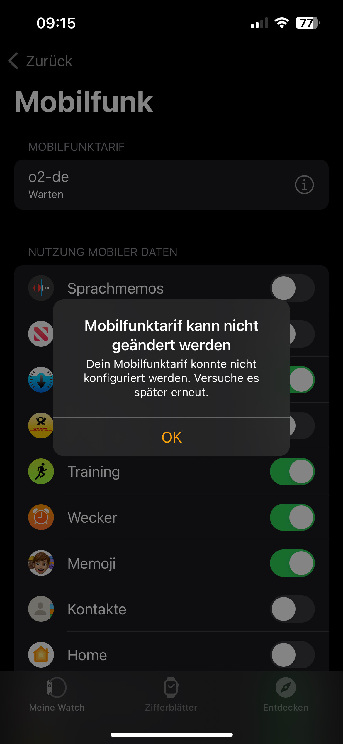 Hallo, habe meine Apple Watch ohne e-Sim installiert und möchte jetzt nachträglich einen Mobilfunktarif auswählen -> das geht nicht!