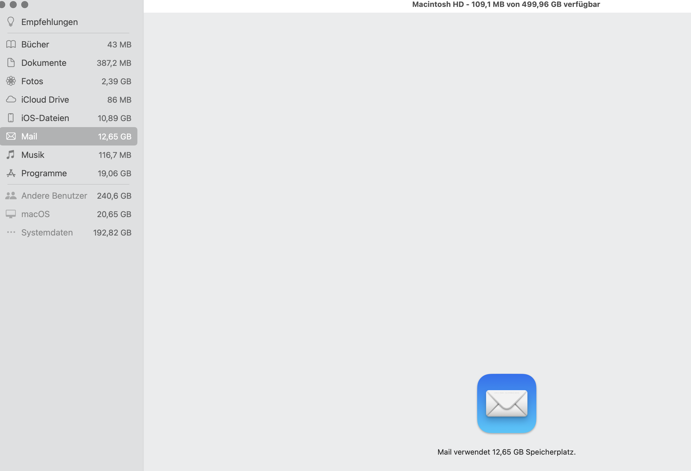 Um den Mail-Speicher zu verringern, ist es am einfachsten, wenn du dein Email-Konto auf deinem Mac entfernst und erneut anlegst. Außerdem kannst du diese Tipps befolgen: Freigeben von Speicherplatz für E-Mail-Accounts in Mail auf dem Mac - Apple Support (DE)