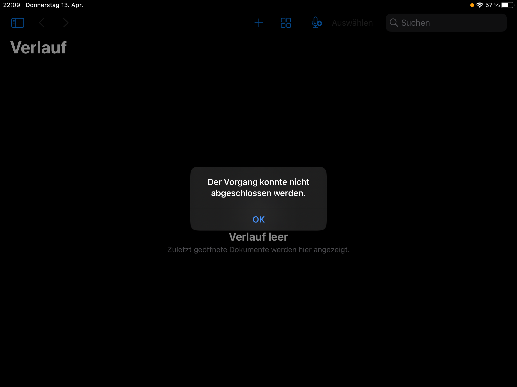 Sobald ich aber nun irgendein Instrument öffne bsp smartpiano, öffnet sich der „Verlauf“ welcher natürlich leer ist. Und es kommt die Fehlermeldung „der Vorgang konnte nicht abgeschlossen werden „.