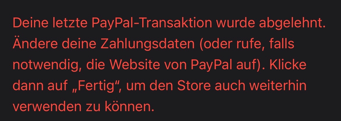 Bitte bearbeite deine Zahlungsinformationen online unter appleid.apple.com