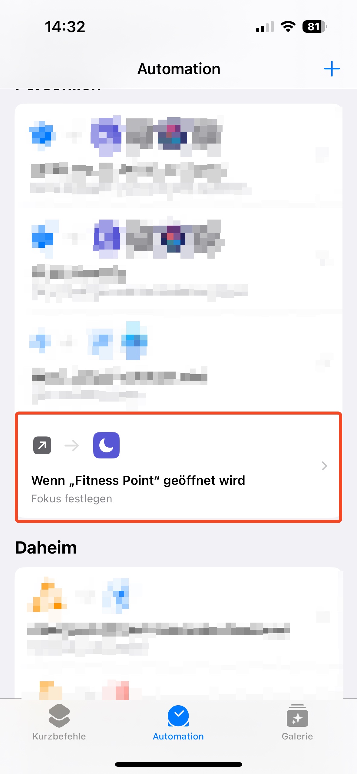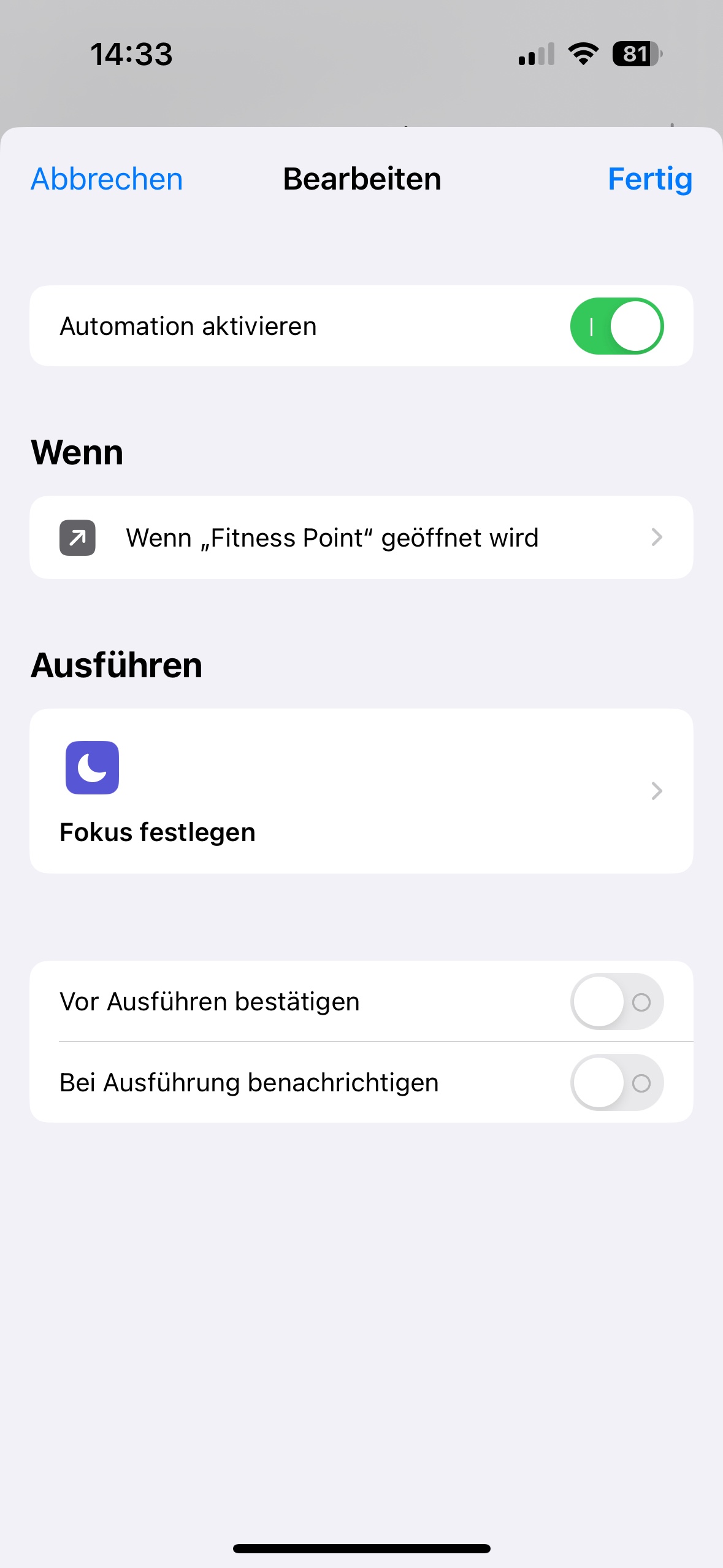 Es geht um den Fitness-Fokus: dieser soll bei Öffnen diverser Sport-Apps automatisch angeschaltet werden.