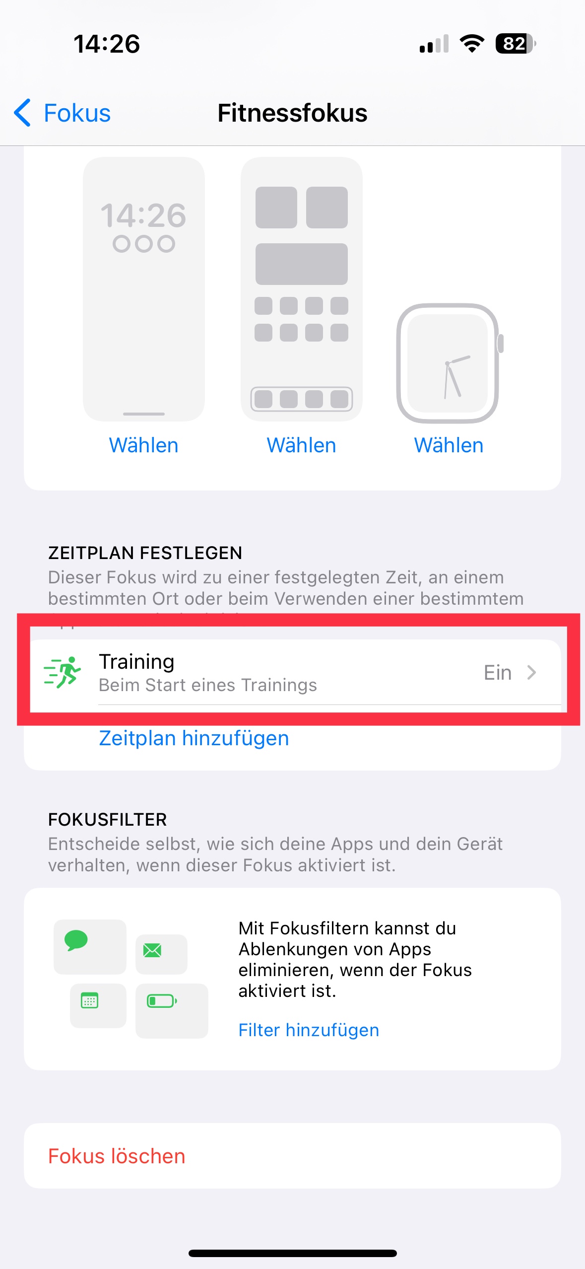 Wenn ich auf der Apple Watch eine App starte, die einen Fokus automatisch starten soll, wird der Fokus nicht aktiviert.