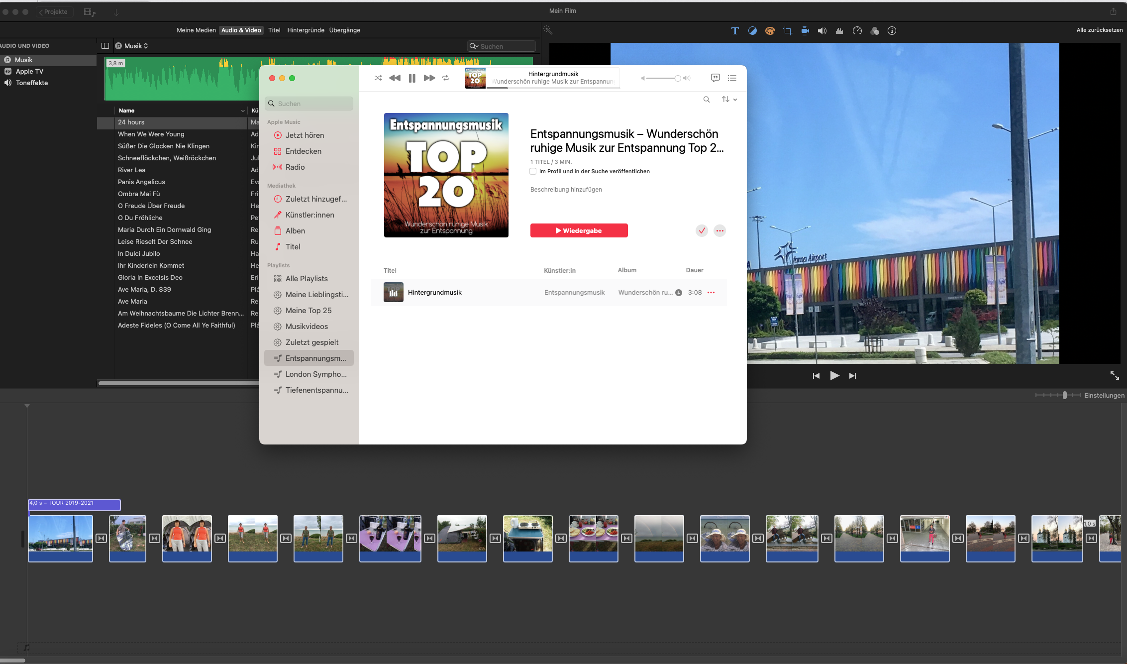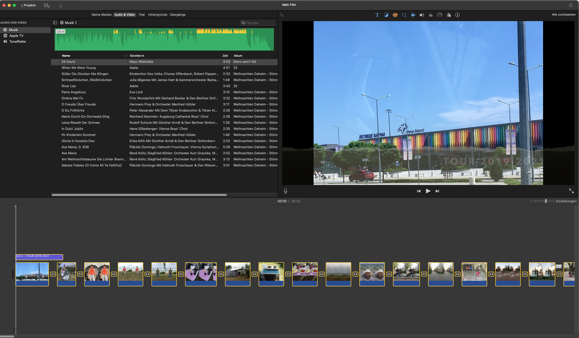 kann mir jemand zeigen, wie ich die Musik in meinen ersten iMovie-Video-Film (ca. 8 Min.)!