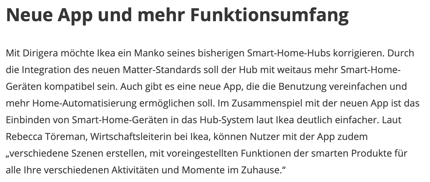 ich habe einen DIRIGERA Hub bei Homekit eingebunden. Funktioniert prinzipiell auch.