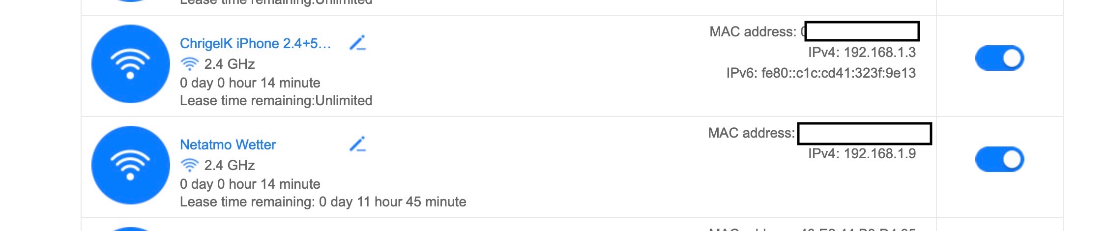 2° Wenn dort schon andere Geräte eingetragen sind dann trägst Du die MAC Adresse Deines iPhones ein.
