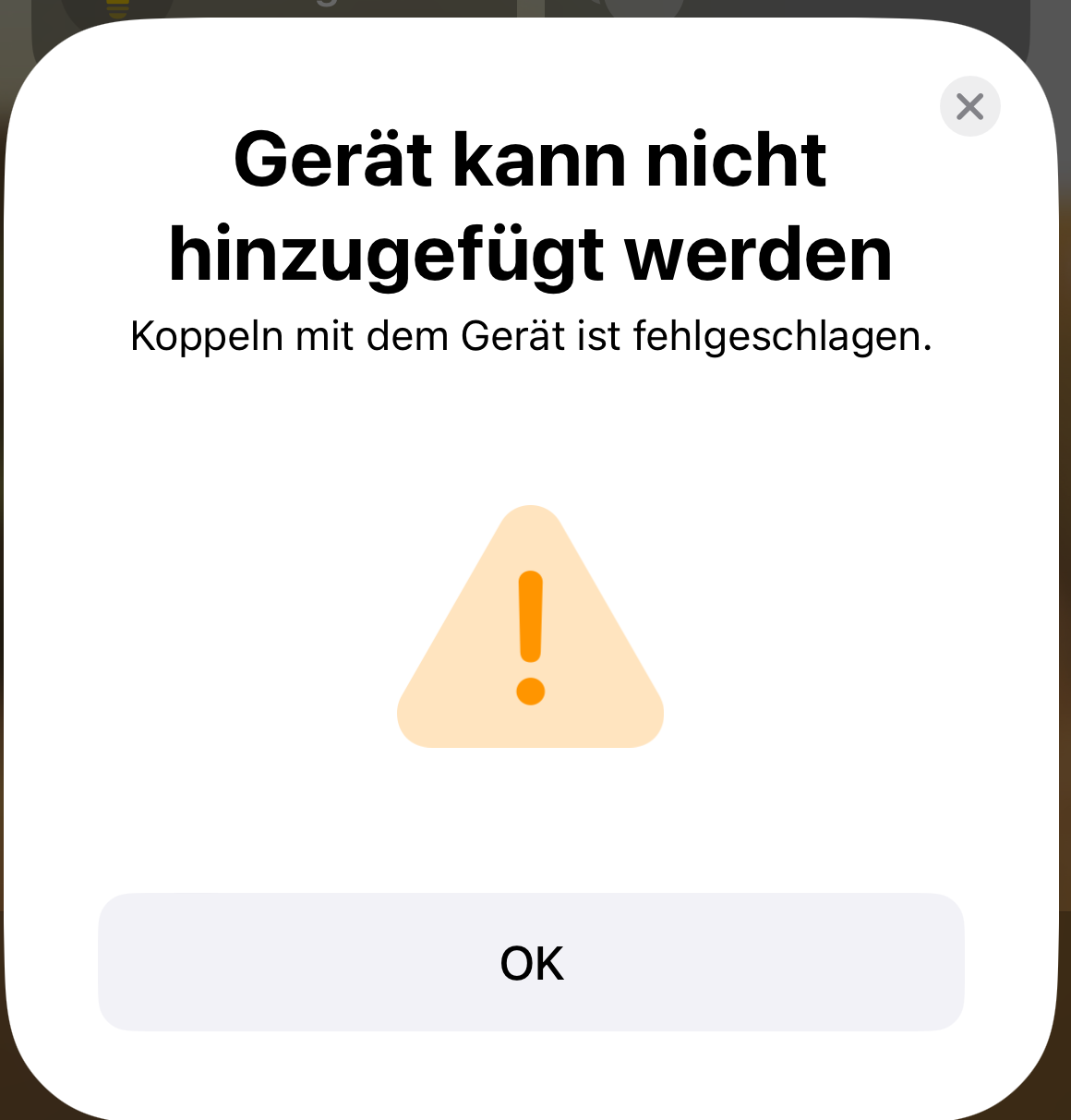 Das Upgrade der Eve Steckdose ist problemlos gelaufen und ich erhielt einen neuen Geräte-Code. Bei den folgenden Verbindungsversuchen bin ich immer wieder an den gleichen Punkten gescheitert.