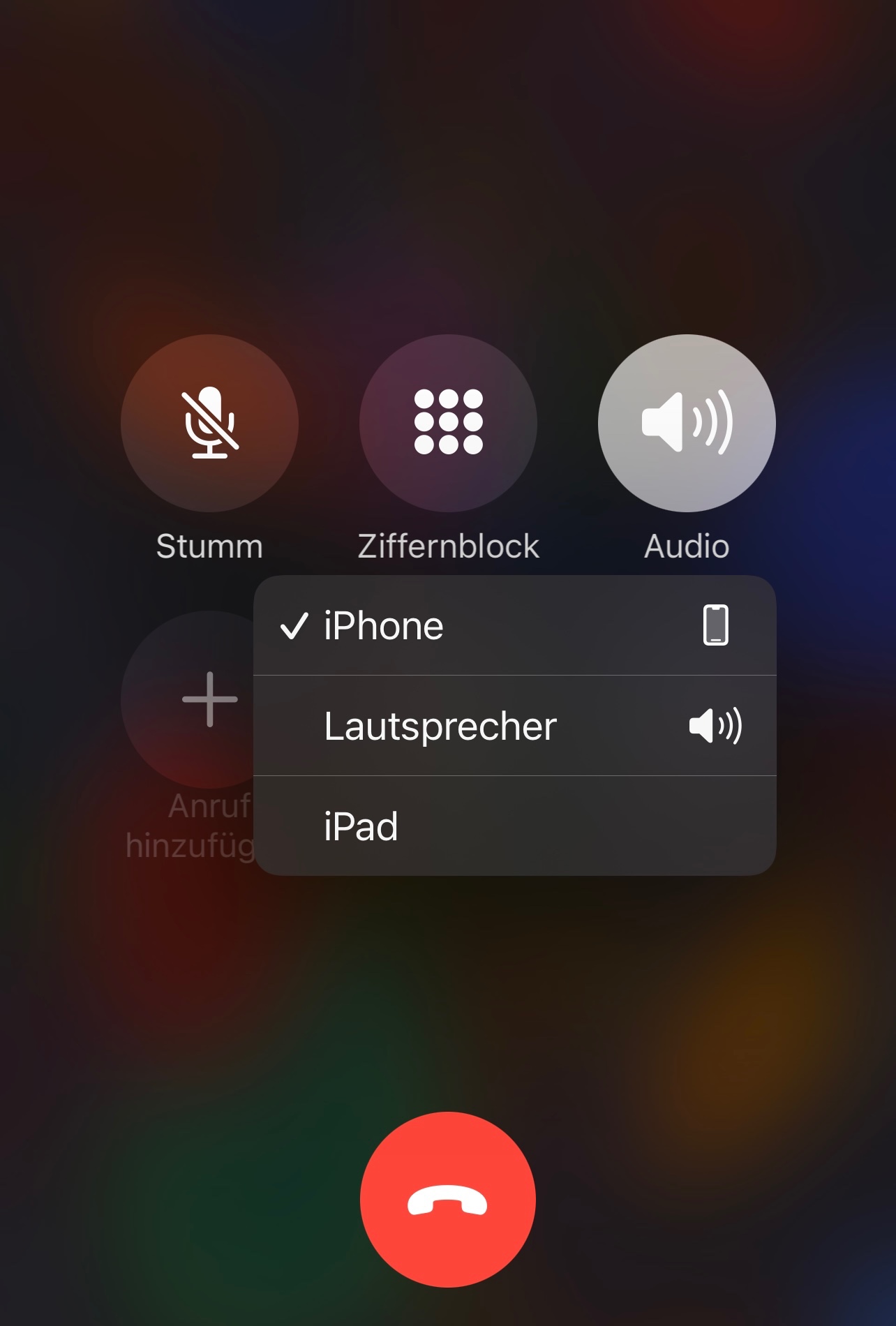 Seit kurzem taucht bei mir, wenn ich den Lautsprecher bei Anrufen aktivieren möchte, neben der normalen Lautsprecher Funktion noch mein iPad auf (siehe Bild im Anhang). Dadurch kann man nun nicht mehr mit einem Tipp direkt den Lautsprecher aktivieren, sondern muss diesen erst aus dem Menü auswählen, was also ein Schritt mehr ist und stört.