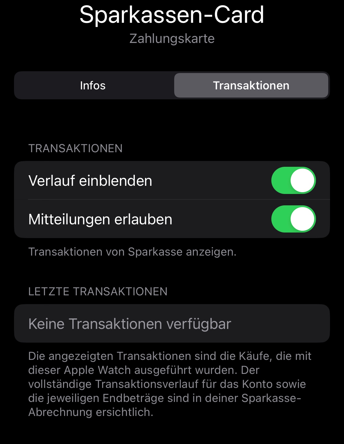 Ich verwende auf Watch und iPhone meine Sparkassen Karte.