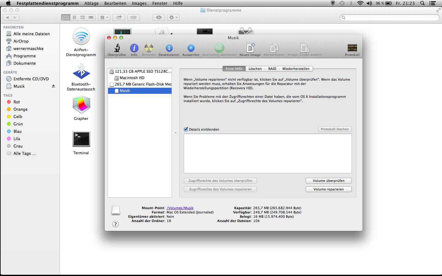 Ich möchte einen USB-Stick leeren um Platz für neue Dateien zu schaffen. Nachdem ich alle Dateien in den Papierkorb gelegt habe und im Finder auch keine mehr angezeigt werden, zeigt mir die Info dass trotzdem noch der größte Teil des Speichers belegt ist. Ich möchte daher den Stick formatieren um auch unsichtbare Dateien zu entfernen.