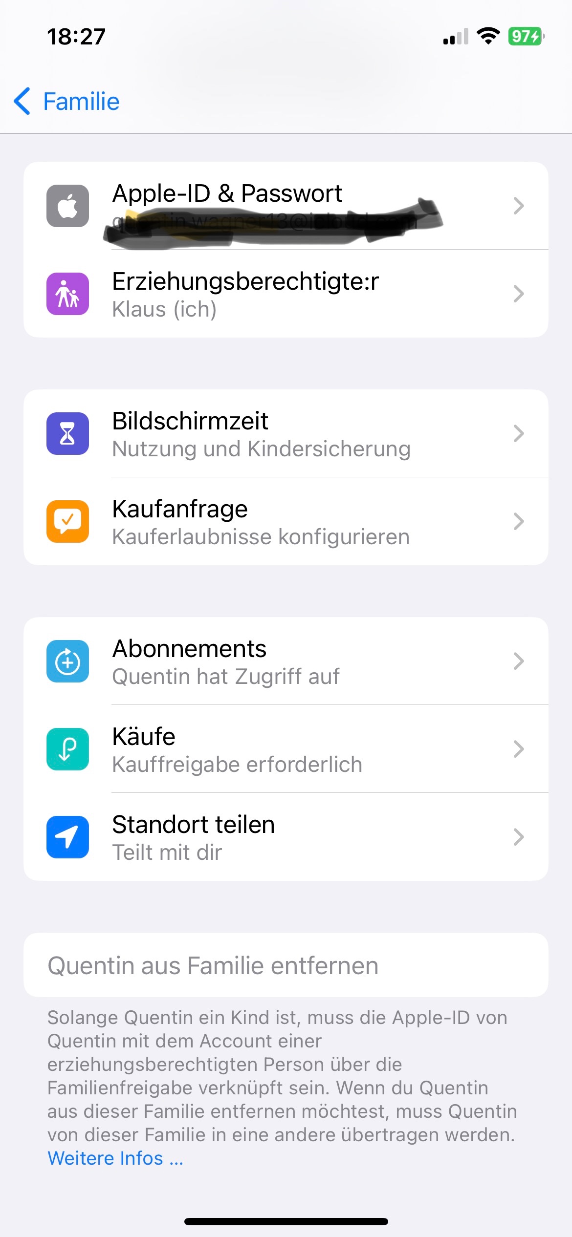 Familienfreigabe funktioniert nicht richtig