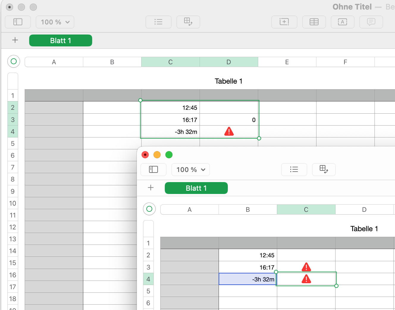 Zeitdifferenz in Numbers berechnen
