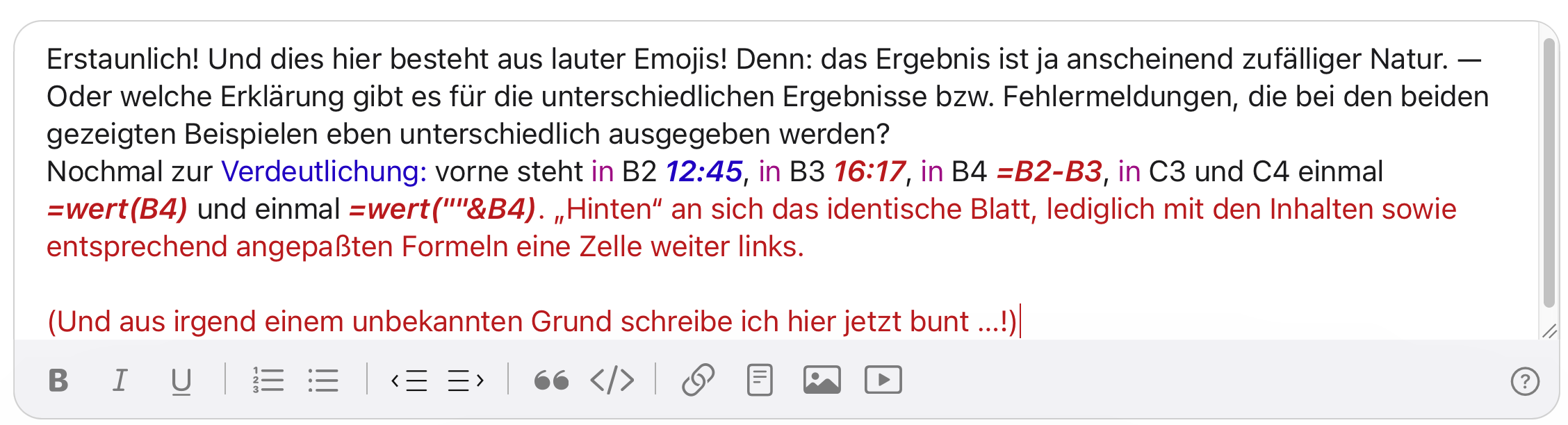 Erstaunlich! Und dies hier besteht aus lauter Emojis! Denn: das Ergebnis ist ja anscheinend zufälliger Natur. — Oder welche Erklärung gibt es für die unterschiedlichen Ergebnisse bzw. Fehlermeldungen, die bei den beiden gezeigten Beispielen eben unterschiedlich ausgegeben werden?