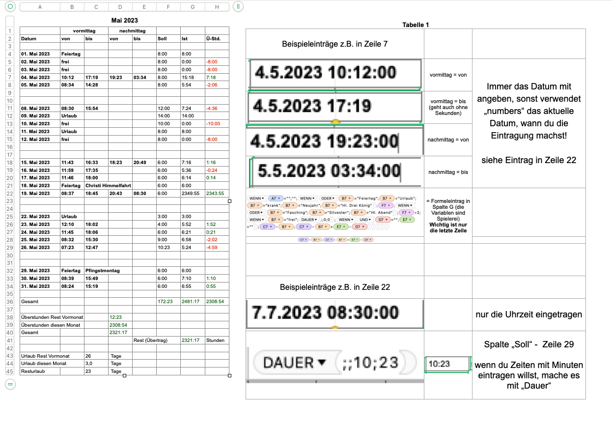 Zeitdifferenz in Numbers berechnen