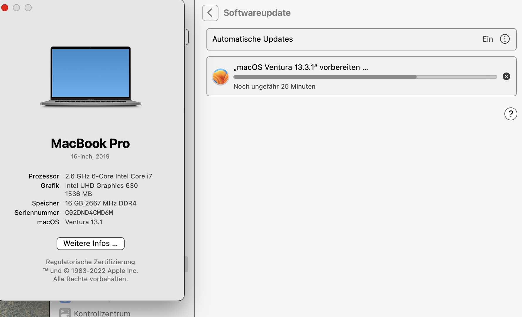 Es sollte doch keine Rolle spielen, dass ich von Ventura 13.1 auf 13.3.1 update. Oder ?