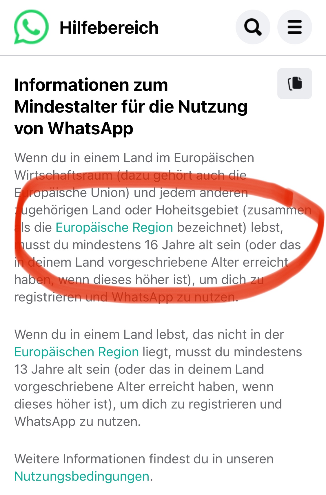 Die Frage war wie man WhatsApp auf das Handy einer unter 13jährigen Person bekommt und nicht ob die EU oder WhatsApp das ok findet.