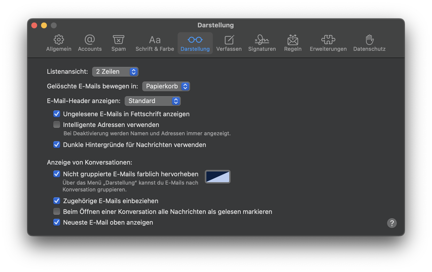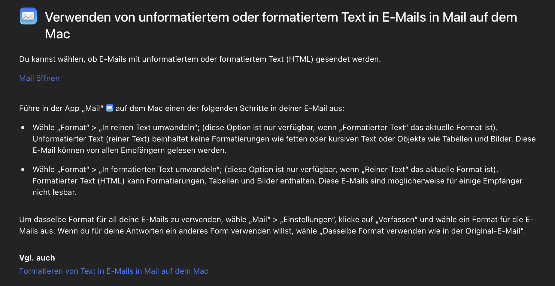 Wie kann ich Mail so umstellen, dass die Anzeige der E-Mails nur noch im Textformat erfolgt, ohne dass eine URL abgerufen oder Bilder angezeigt werden?