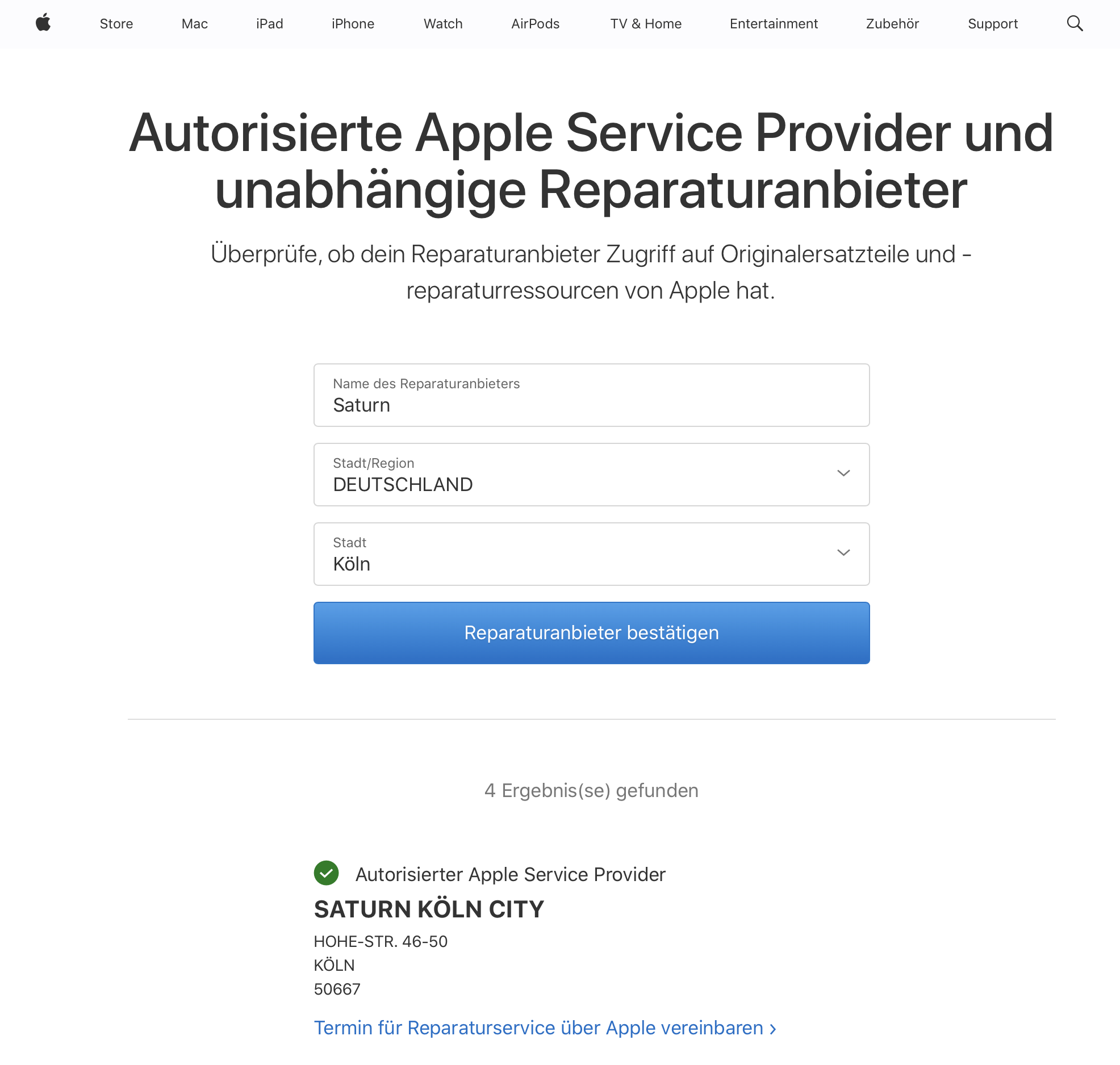 Kein Apple-Originalakku beim autorisierten Apple Service Provider Tec InStore im Media Markt