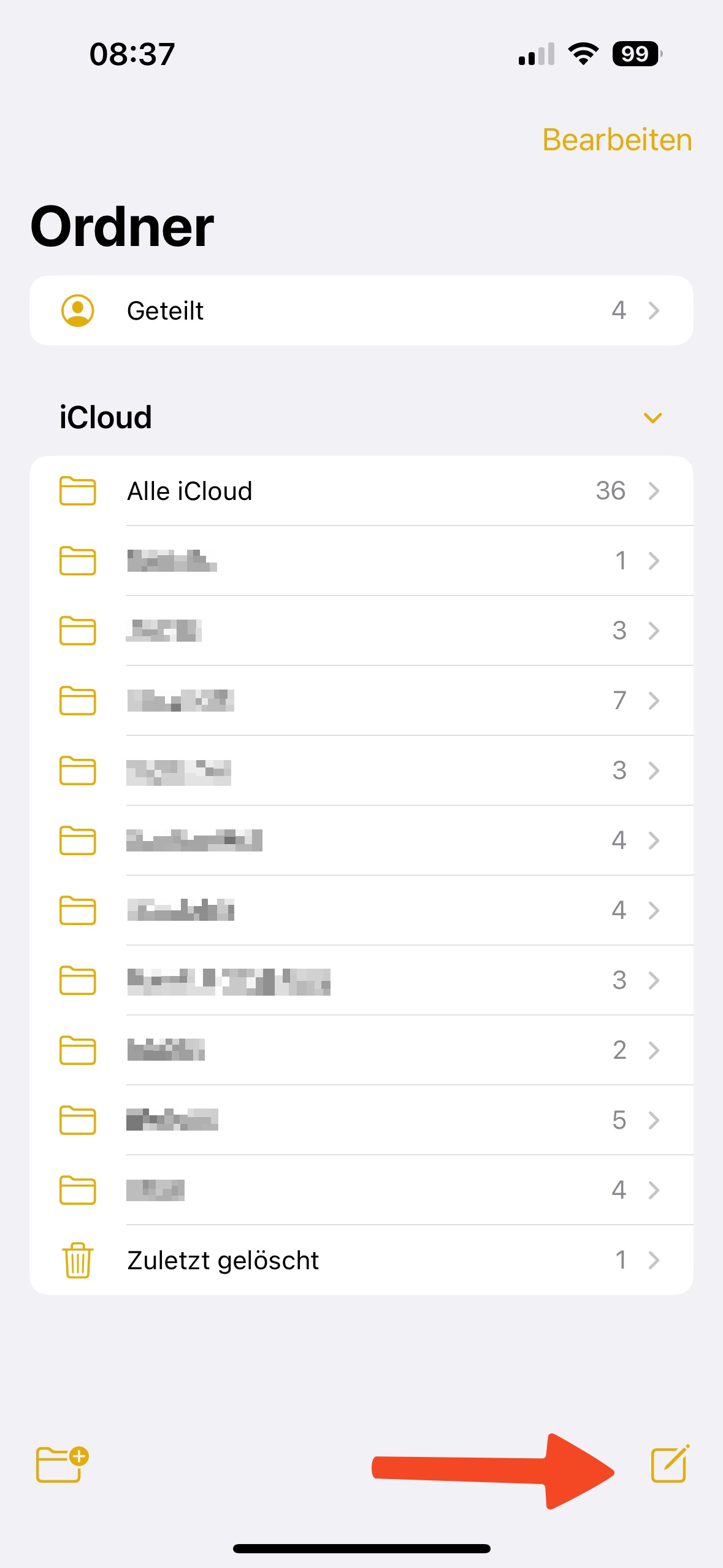 - Öffne schon mal die Notizen App und erstelle eine neue leere Notiz: