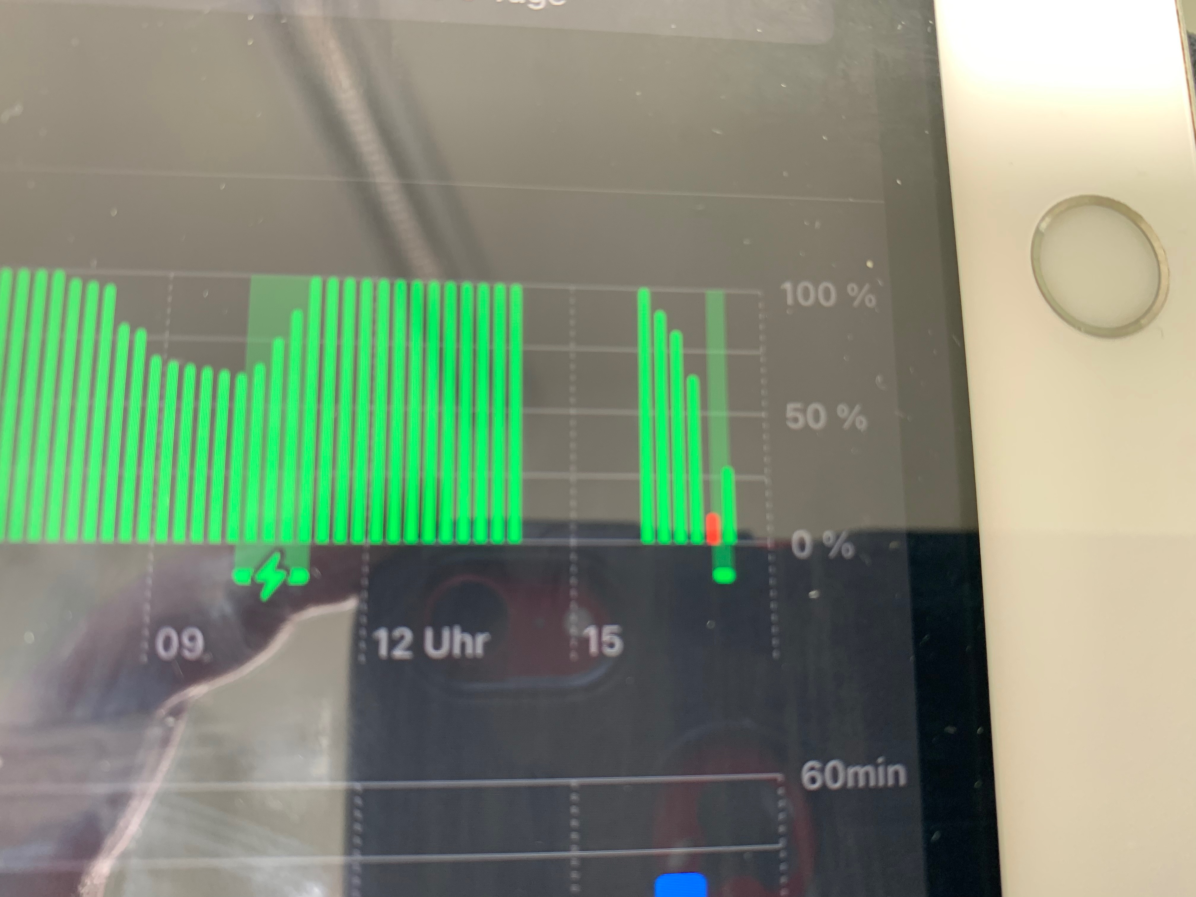 anbei häng ich ein Bild von meinem Batteriemenü des iPads. Ganz rechts sieht man den Akku Sprung.