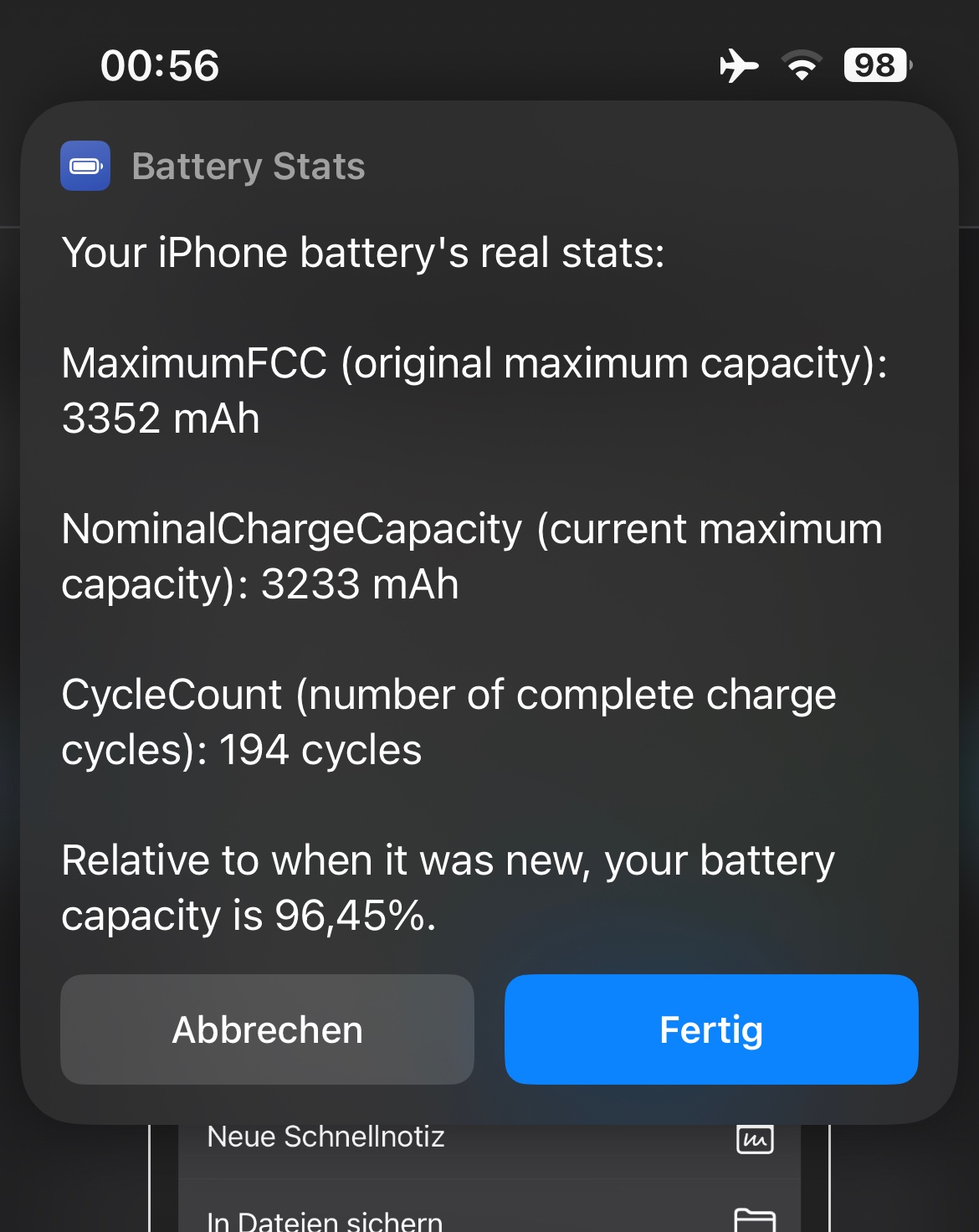 Ach und bitte verwende doch Apple eigenes Tool dafür. Dieses gibt dir die genausten Werte, du findest es unter Einstellungen - Batterie - Batteriezustand